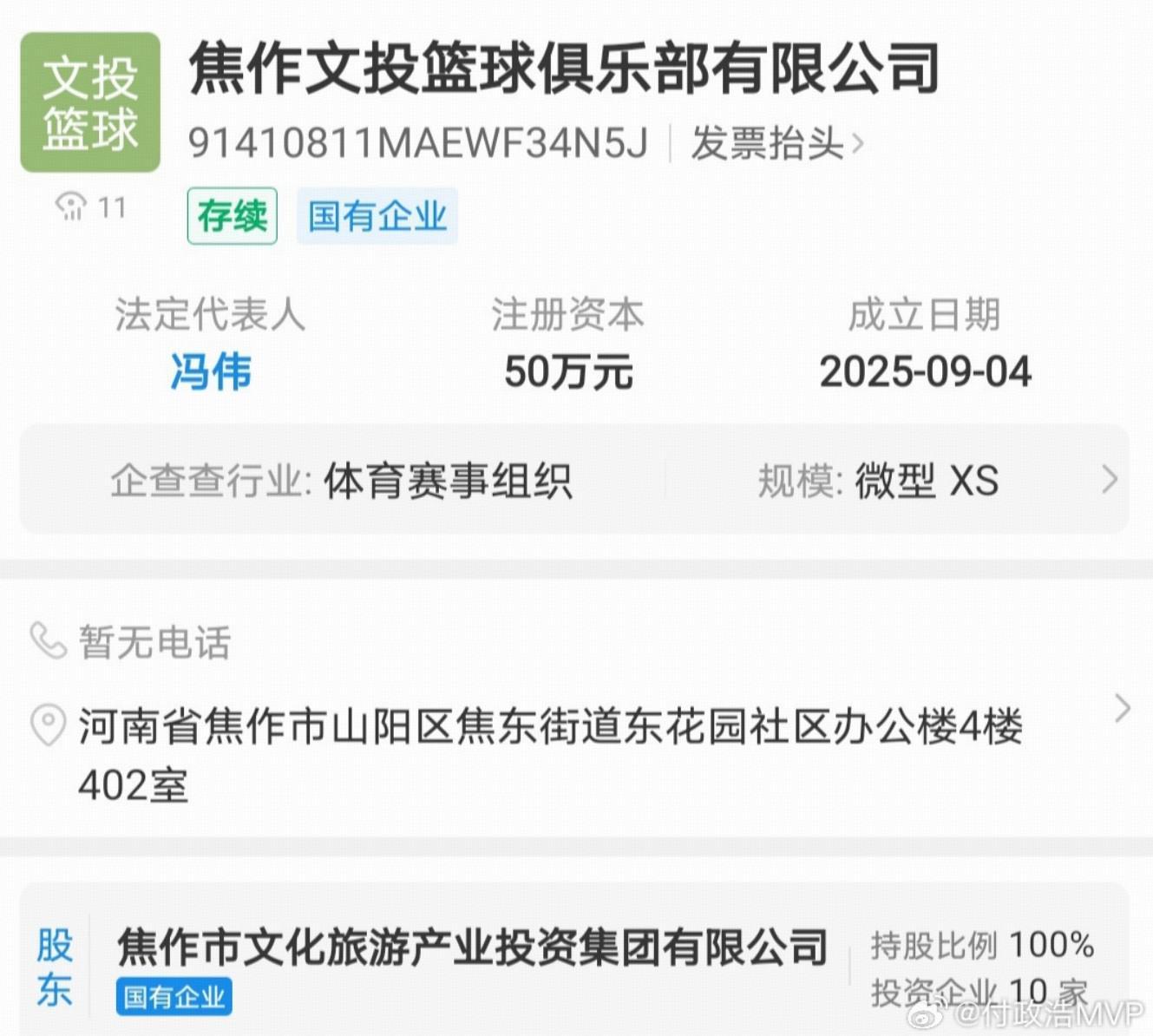 据报道,焦作文投篮球俱乐部于9月4日新成立,它的股东是焦作文旅产业投资集团。有可能参与新赛季的NBL联赛,至于CBA未来是扩军是升降级还是扩军后升降级,现在还在评估,尚无定论。
